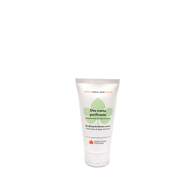 Un deodorante privo di sali di allumino, pietra di allume e alcool per un’azione delicata nel rispetto dell’equilibrio fisiologico della pelle. Con estratti di mela e menta bio toscani, garantisce freschezza per tutta la giornata.