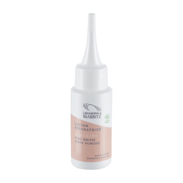 ALGA CICOSA® Reparative Lotion dries, mends, and disinfects irritated skin in moist areas (areas subject to maceration). Its hypoallergenic formula contains Alga Sendatu®, a patented natural reparative extract (from Red Seaweed of the Basque Coast), that promotes the reconstruction of the upper layers of the skin.